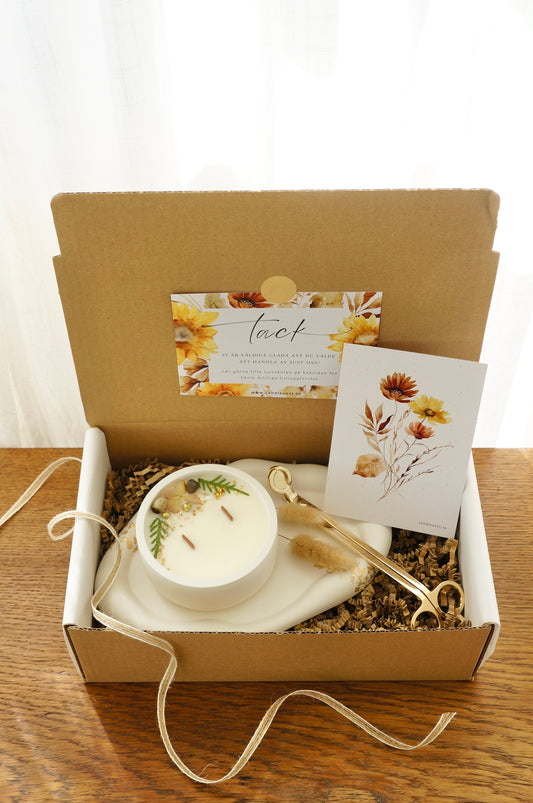 Presentbox- Botaniskt doftljus inkl. ljusfat & vektång