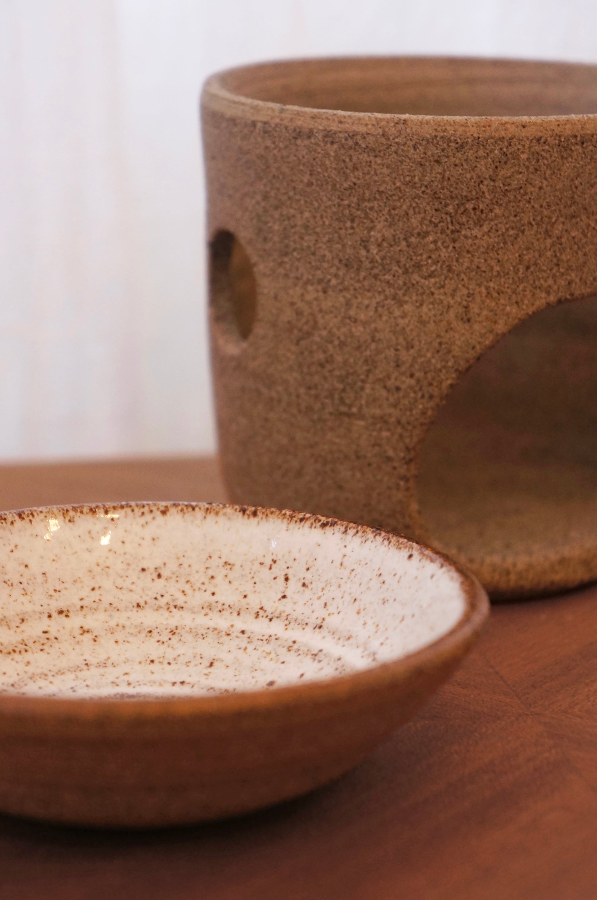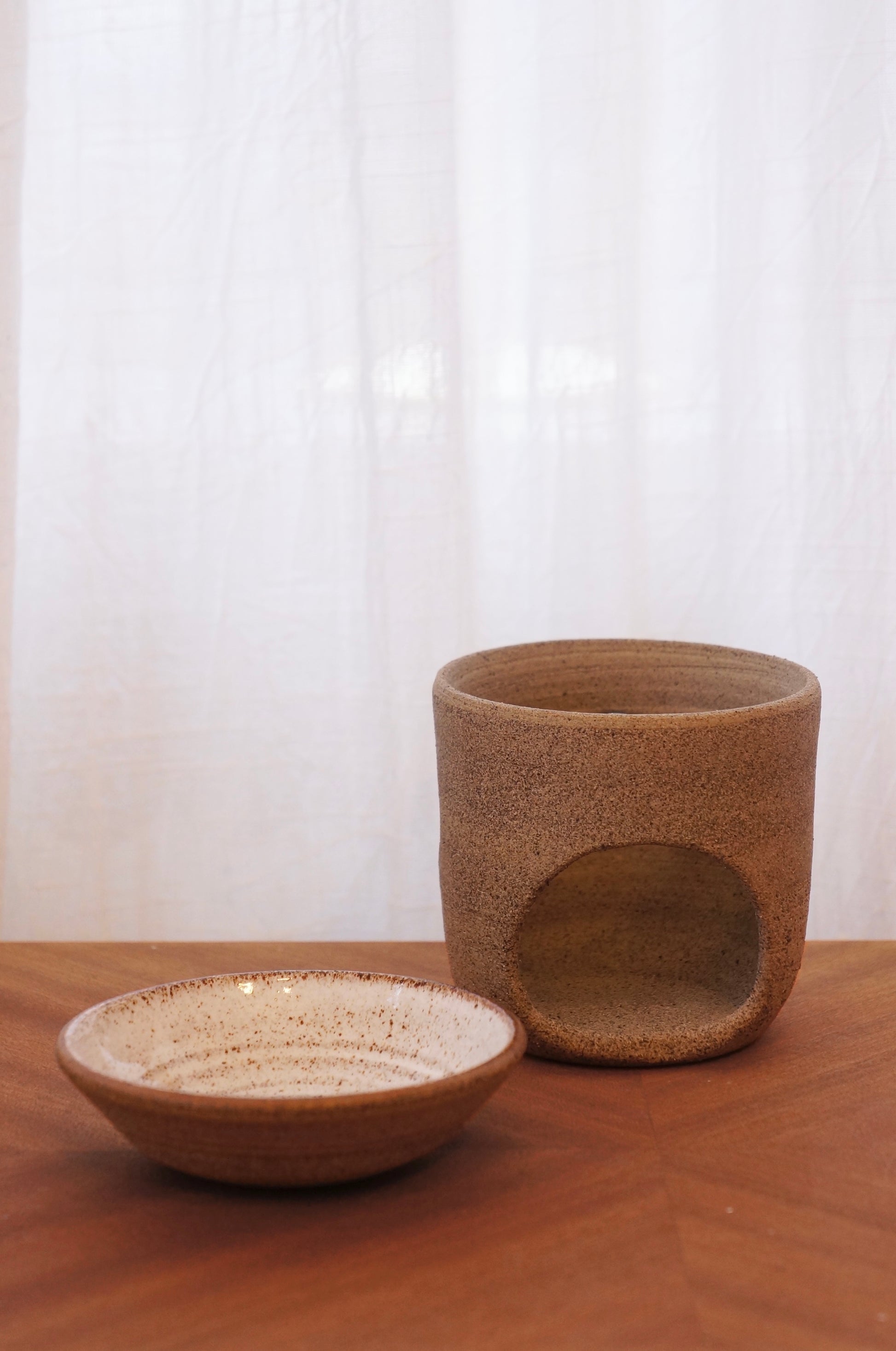 Vacker och rustig och handgjord aromalampa från Cillas Keramik.